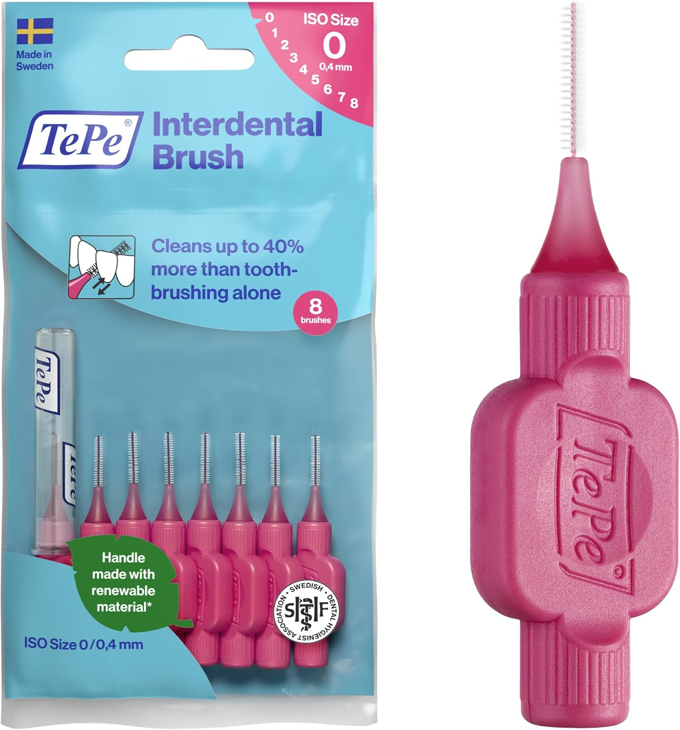 TePe Interdental Brush Angle, Pink, 0.4mm/ISO 0, 6pcs, Interspace Cleaning, Plaque Remover for Teeth with Narrow Gaps, ensures Strong Gums, Carton Pack