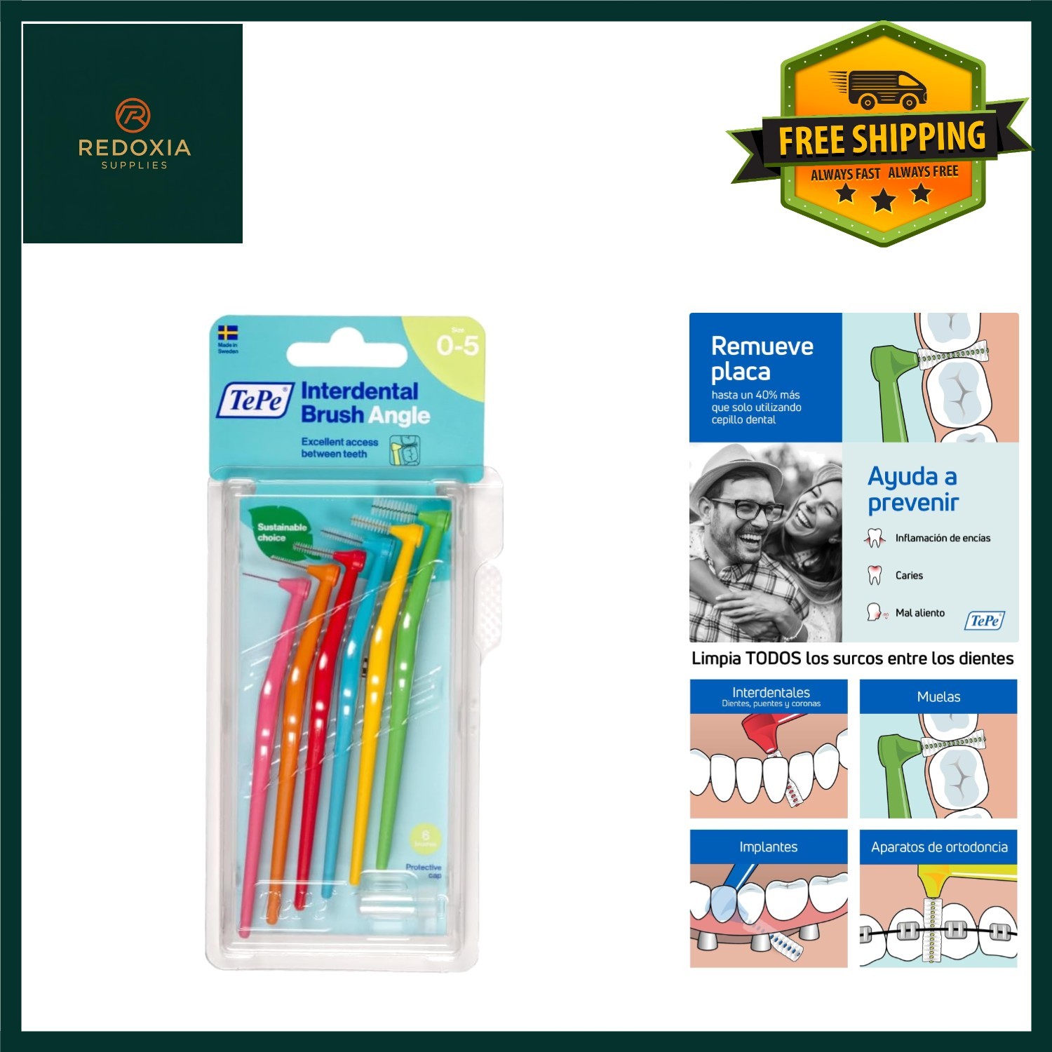 TePe Interdental Brush Angle, Mixed 6 count (Pack of 1), - Size 0-5