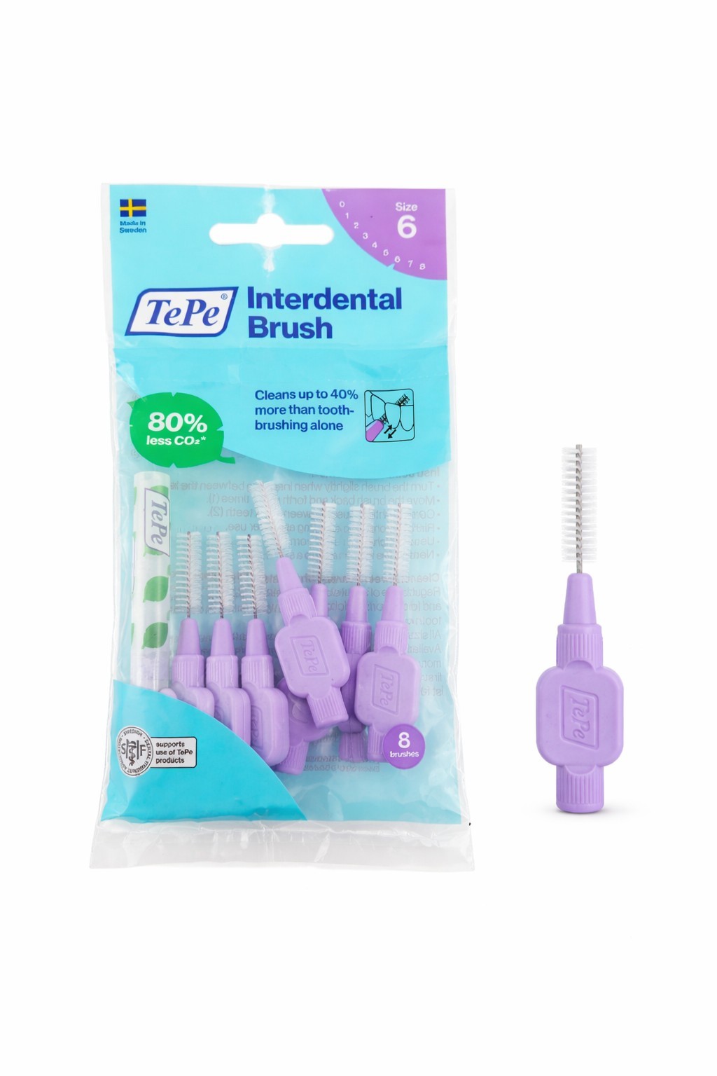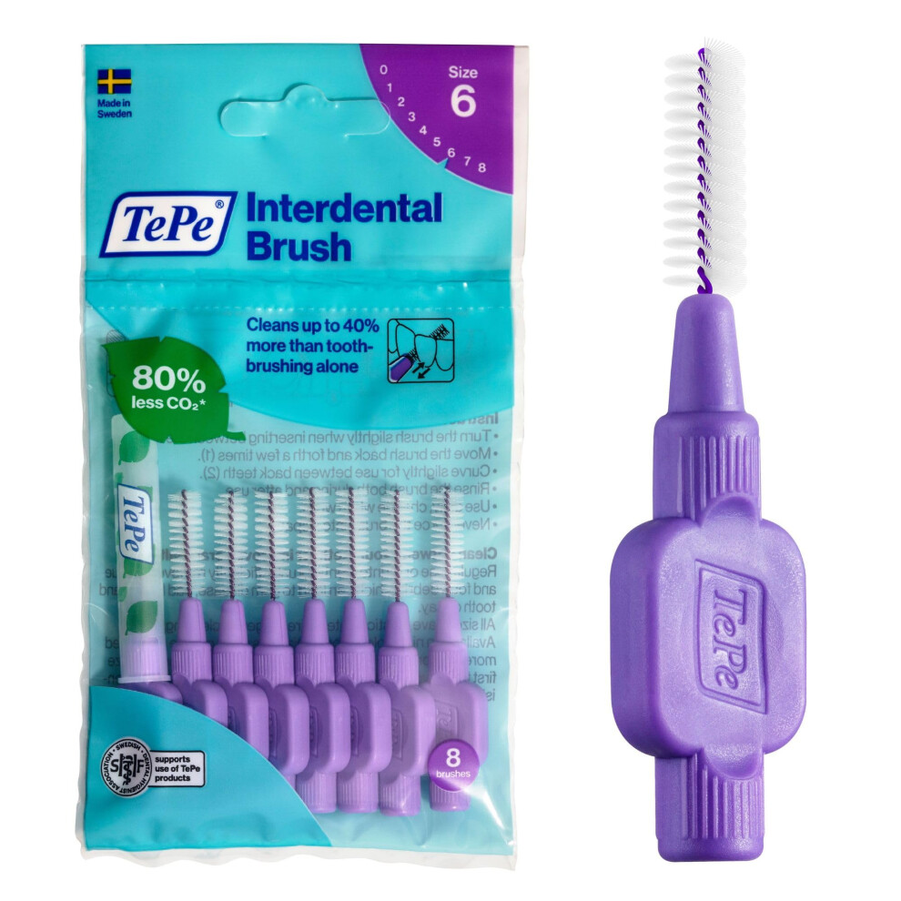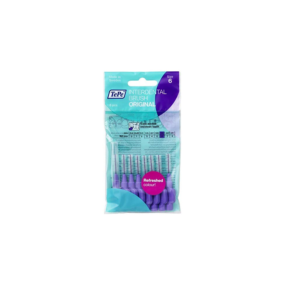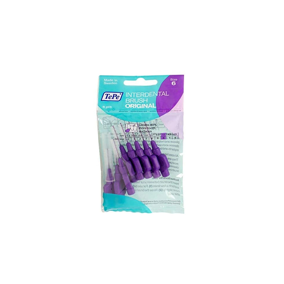 TePe Interdental Brush, Original, 8 count (Pack of 1), Size 6 - Purple