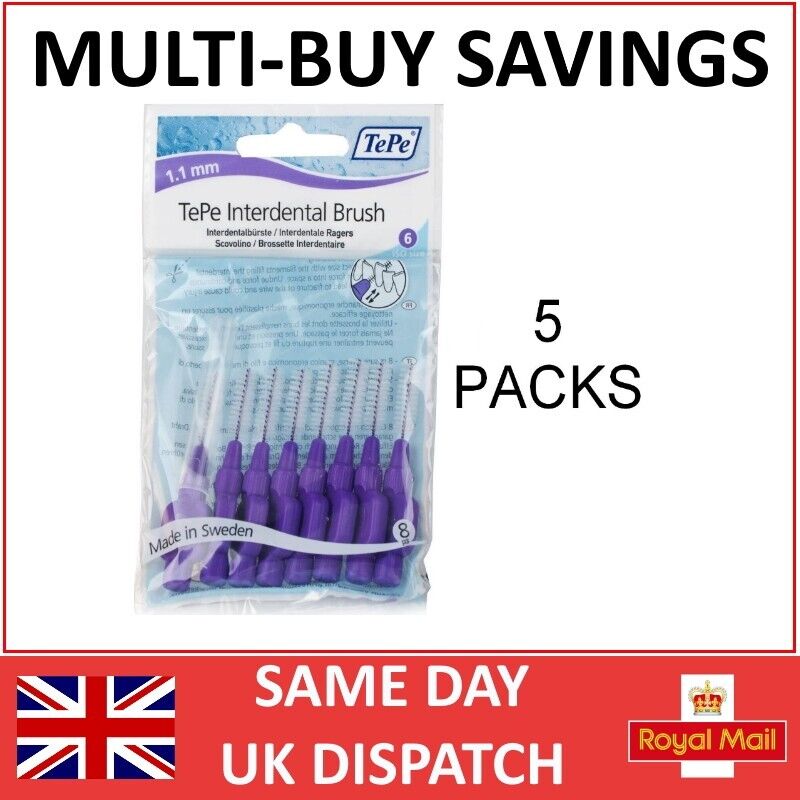 TePe Interdental Brushes 1.1mm Purple - 5 pack of 8 Brushes - Fast, Free Ship