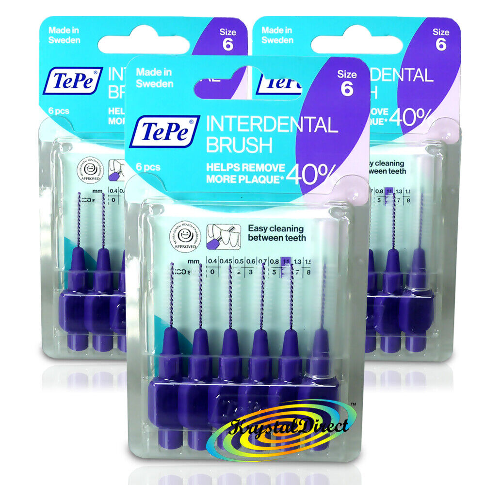 Tepe Interdental Brushes PURPLE Size 6 x 3 Packs