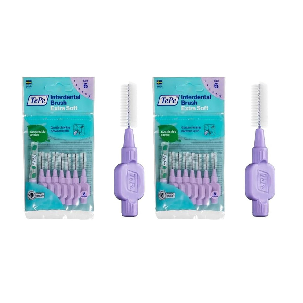 TePe Interdental Brush, Extra Soft, 8 count (Pack of 2), Size 6 (Purple)