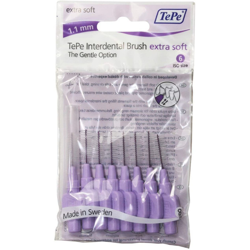Tepe Interdental Brush, Extra Soft, Purple, 1.1Mm/Iso 6, 8Pcs, Plaque Removal, E