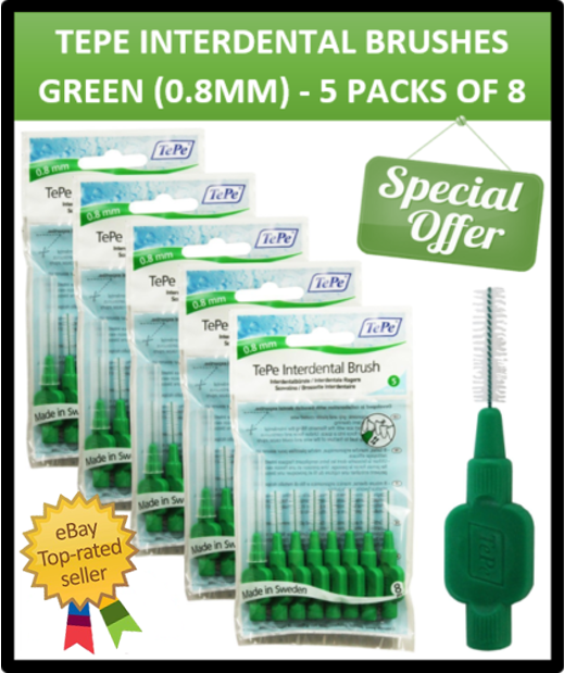 GREEN TEPE INTERDENTAL BRUSHES 0.8MM (40 BRUSHES) REMOVES DENTAL PLAQUE