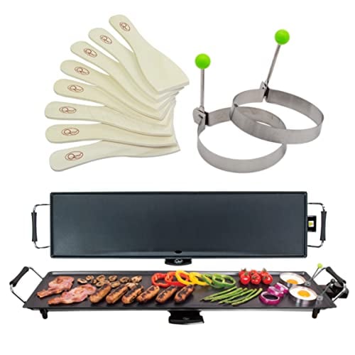 Andrew James Teppanyaki Electric Grill Plate & 2 Egg Rings | Large Non-Stick Tabletop Griddle with 43cm x 22.5cm Hot Plate & Adjustable Temperature | Includes 8 Wooden Spatula & Recipes in Manual