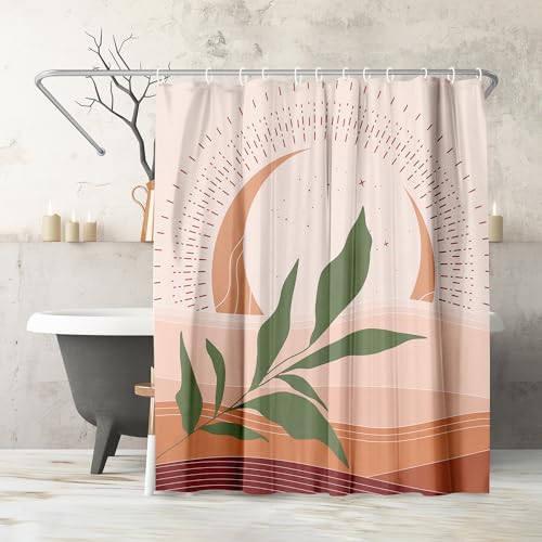 Americanflat 71x74 Boho Shower Curtain - Water-Resistant Long Shower Curtain with Durable Metal Grommets and 12 Hooks - 100% Polyester - Sage Green, Terracotta, Blush Pink and Rust Red
