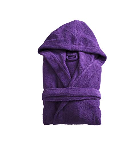 Sapphire Collection Kids 100% Cotton Bathrobe Hooded Terry Towelling Shawl Collar Bath Robe Bath Robe Dressing Gown 7 Colours Age 8-14 (Age 12-14, Purple)