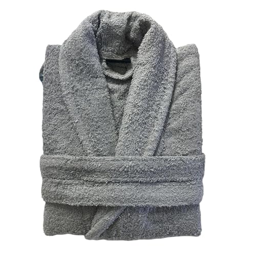 Adore Home Mens 100% Cotton Bathrobe Terry Towelling Shawl Collar Bath Robe Dressing Gown, Slate, L