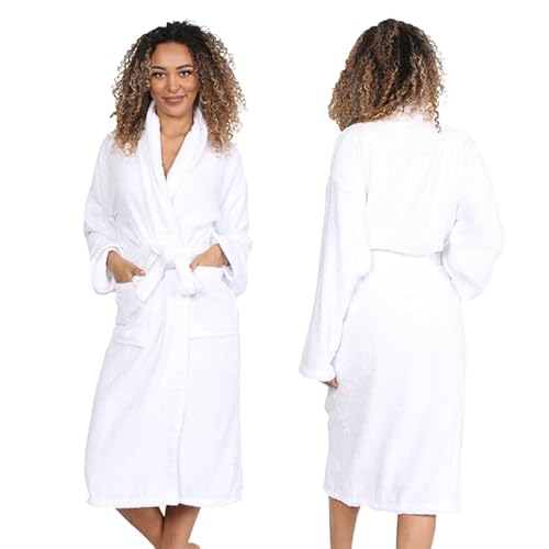 House of Emily Women's Men's 100% Turkish Cotton 400gsm Terry Towelling Shawl Collar Bathrobe Dressing Gown (3XL - Chest Size 67" - 70" | Length 53", White)