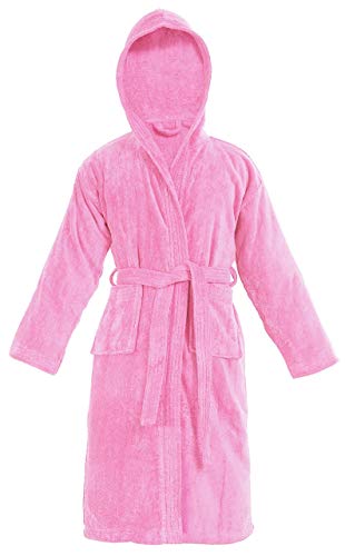Sapphire Collection Kids 100% Cotton Bathrobe Hooded Terry Towelling Shawl Collar Bath Robe Bath Robe Dressing Gown 7 Colours Age 8-14 (Age 12-14, Pink)