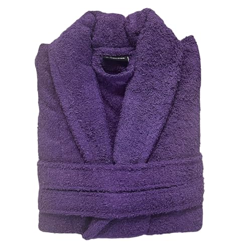 Adore Home Mens 100% Cotton Bathrobe Terry Towelling Shawl Collar Bath Robe Dressing Gown, Aubergine, L