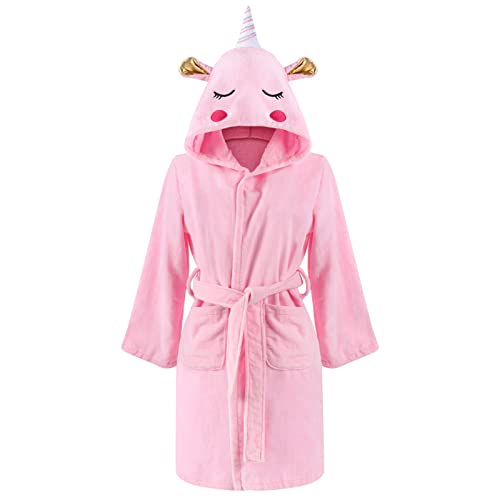 WYTbaby Girls Dressing Gown 100% Cotton Terry Hooded Kids Bathrobe Towelling Robe Dressing Gown for 3-5 Years