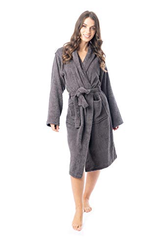 Daisy Dreamer Womens Robe Luxury Terry Towelling 100% Cotton Dressing Gown Bathrobe Highly Absorbent Ladies Hooded Bath Wrap, Charcoal 16-18