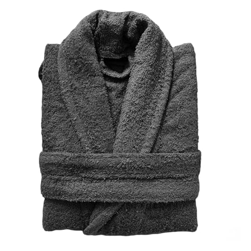 House of Emily Women's Men's 100% Turkish Cotton 400gsm Terry Towelling Shawl Collar Bathrobe Dressing Gown (Medium - Chest Size 45" - 48" | Length 50", Gunmetal Grey)