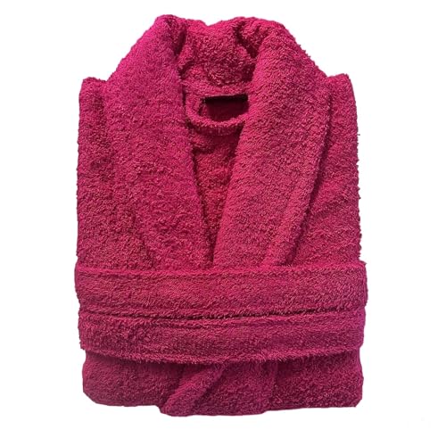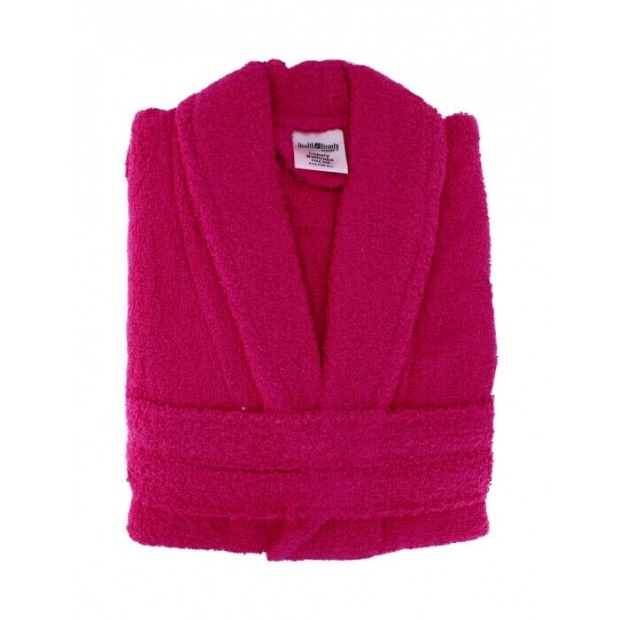 Terry Towelling Bath-Robe Dressing Gown 100% Cotton Shawl Bathrobe Fuchsia