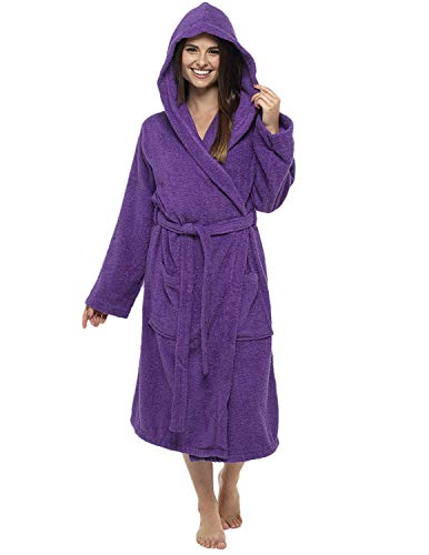 CityComfort Ladies Robe Terry Towelling Cotton Dressing Gown Bathrobe Highly Absorbent Women (M, Deep Purple Hooded)