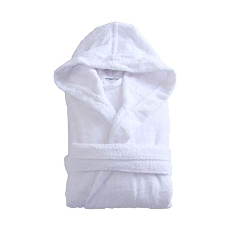 The House Of Emily Turkish Cotton Terry Towelling Hooded Bathrobe Dressing Gown for Men and Women Soft and Highly Absorbent (White, Small - Chest 39"-42")
