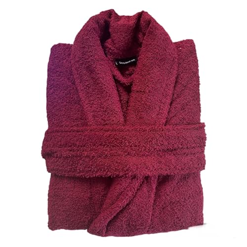 Dudra Luxury Men Women's Bathrobe - 100% Egyptian Cotton Dressing Gown - Terry Towelling Bathrobe – Shawl Towel Robe (Wine, L-XL)