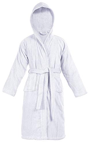 Sapphire Collection Kids 100% Cotton Bathrobe Hooded Terry Towelling Shawl Collar Bath Robe Bath Robe Dressing Gown 7 Colours Age 8-14 (Age 12-14, White)