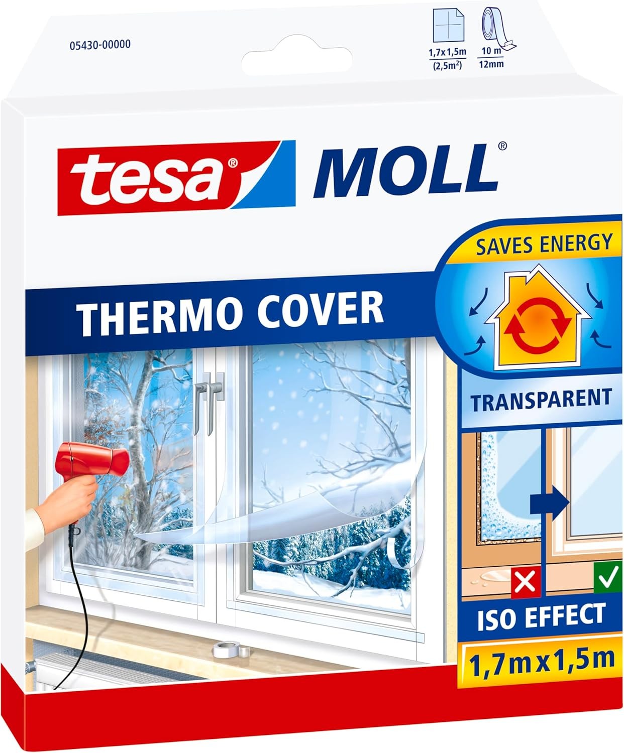 tesamoll Thermo Cover Window Insulating Film Transparent 1.7m x 1.5m with Tape