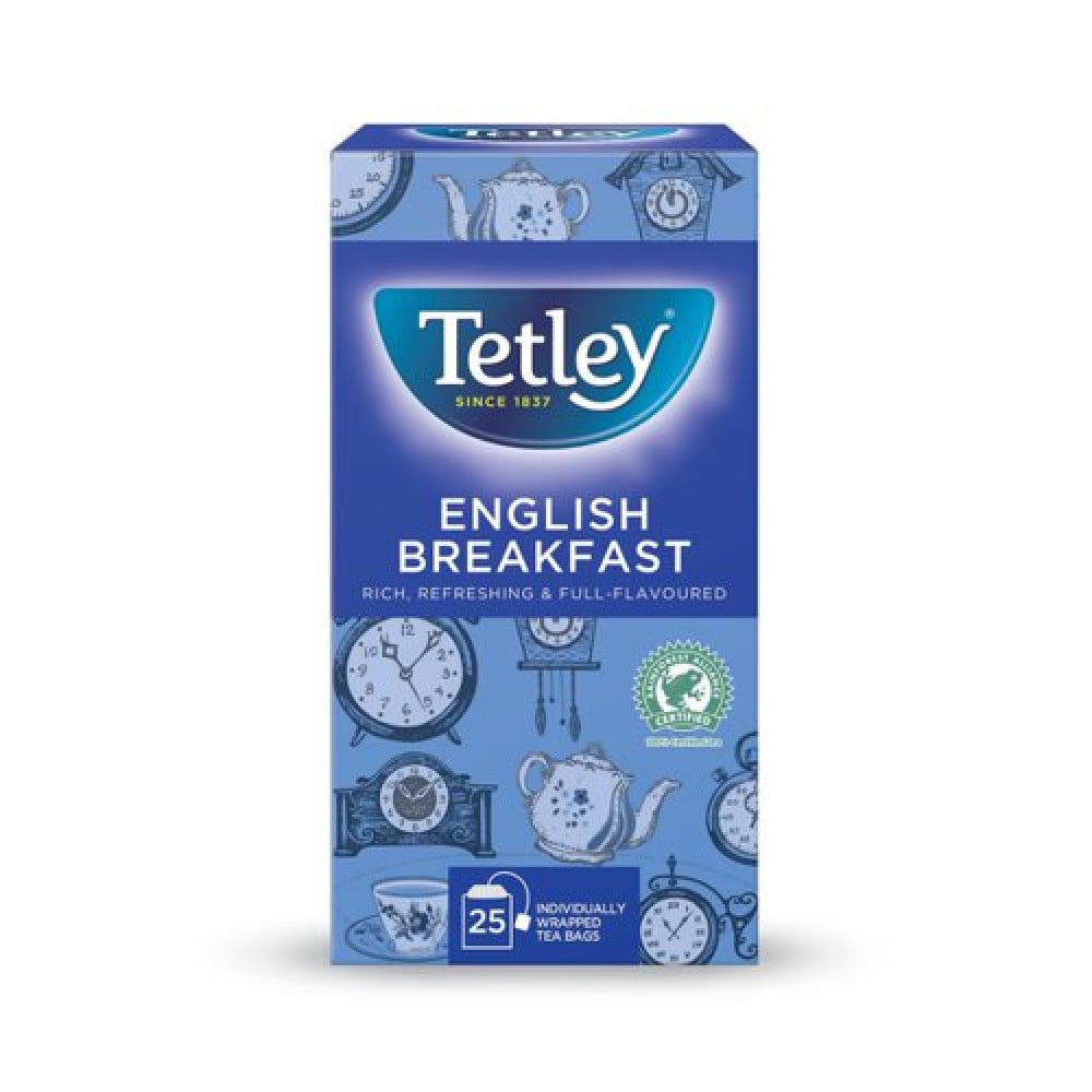 Tetley English Breakfast Tea Bags Individually Wrapped And Enveloped Pack 25