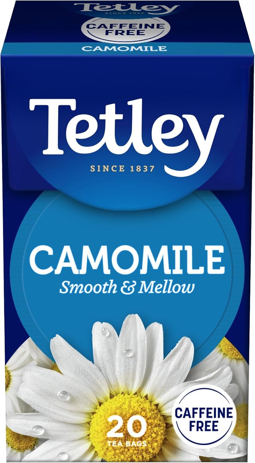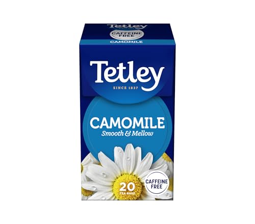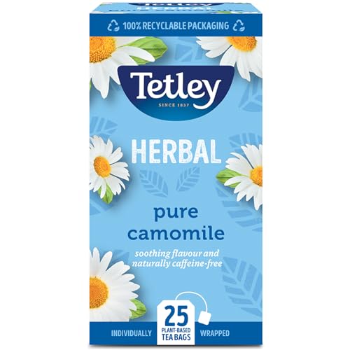 Tetley Pure Camomile Tea Bags - Gentle & Floral Herbal Infusion - Naturally Caffeine-Free - Relaxing & Soothing - Rainforest Alliance Certified - 25 Individually Wrapped Teabags