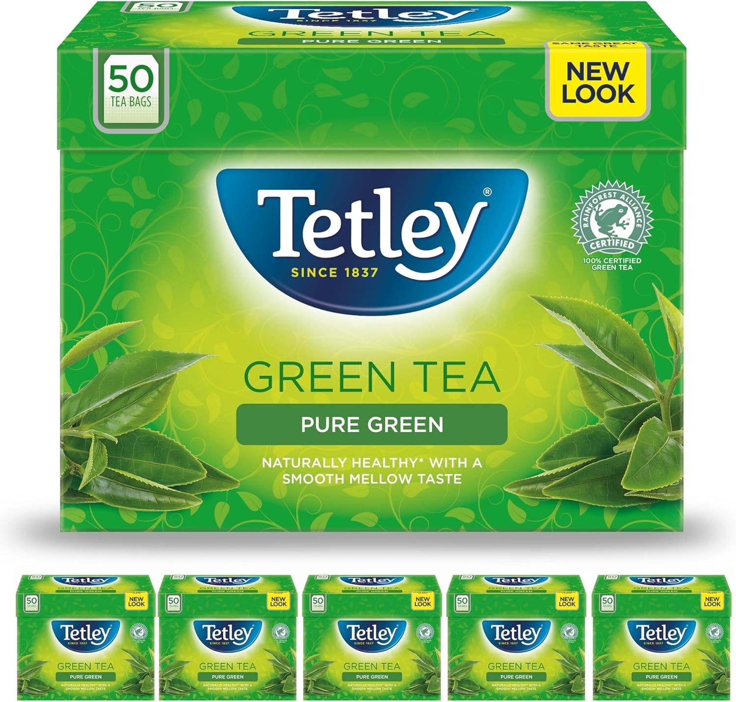 Tetley Pure Green Tea Bags - Naturally Smooth & Refreshing - Plant-Based Teabags - Rainforest Alliance Certified - Perfect for a Relaxing Moment - 150 Teabags (6x25)