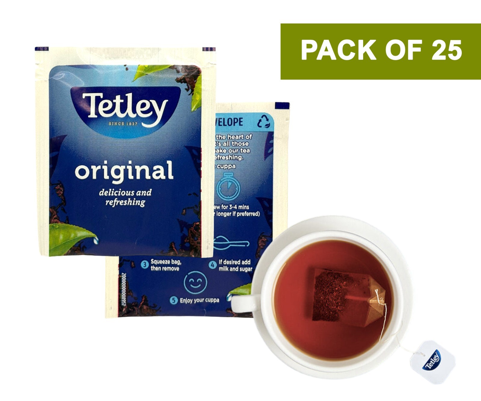 Tetley Original Black Tea Bags Sachets Wrapped Office Catering Pack of 25