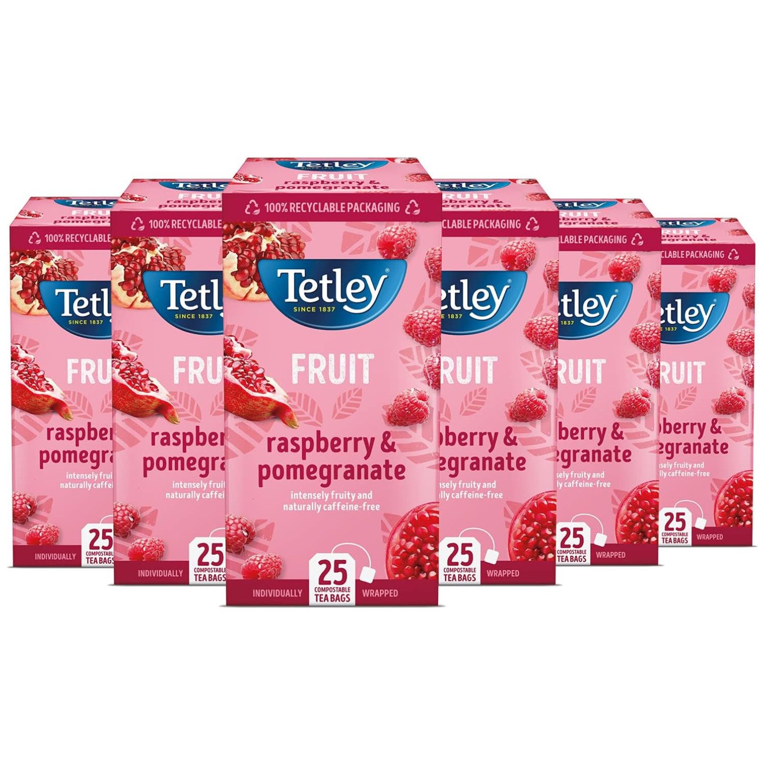 Tetley Tea Herbal Bags Raspberry & Pomegranate Individually Wrapped Sachets x6