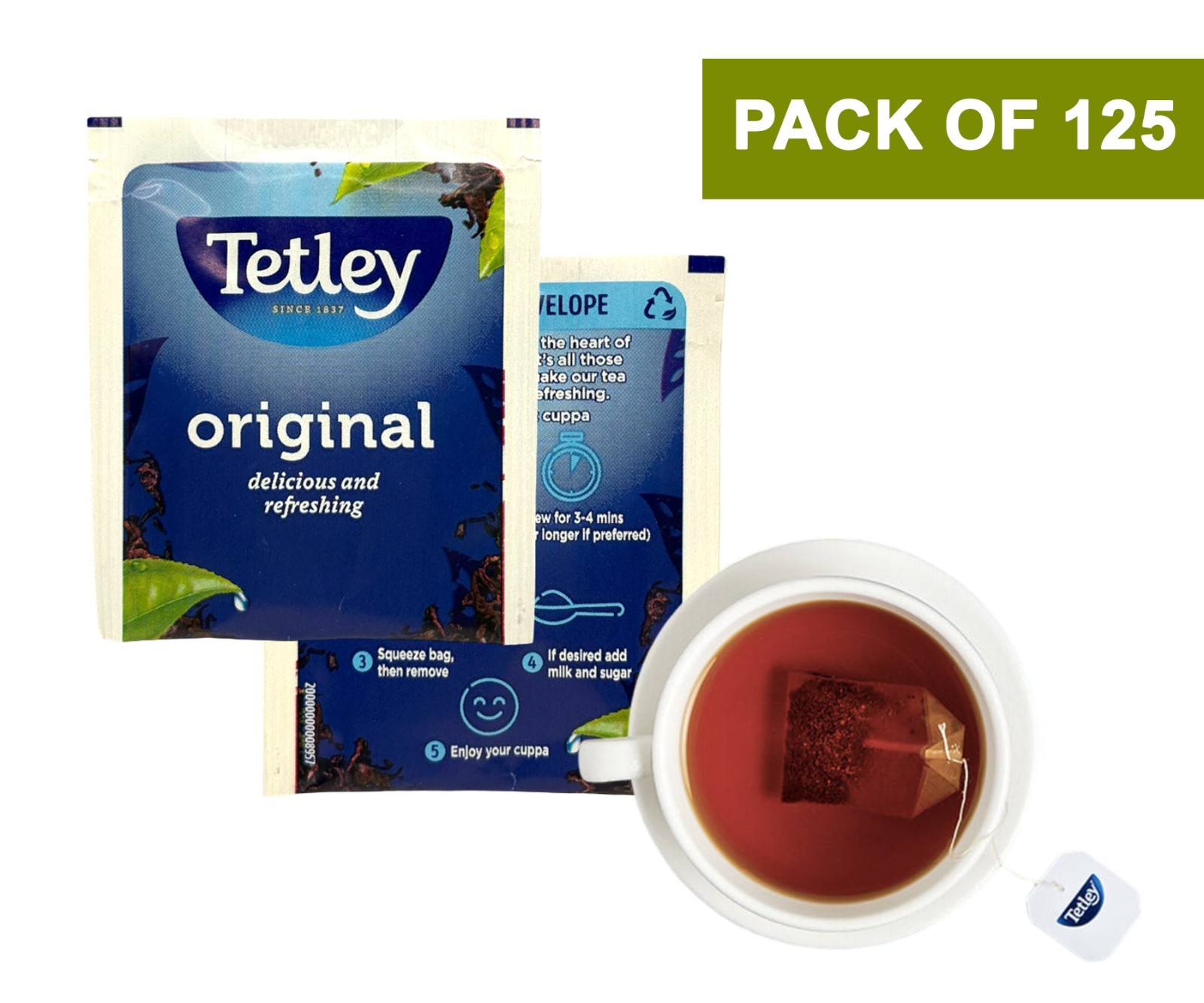 Tetley Original Black Tea Bags Sachets Wrapped Office Catering Pack of 125