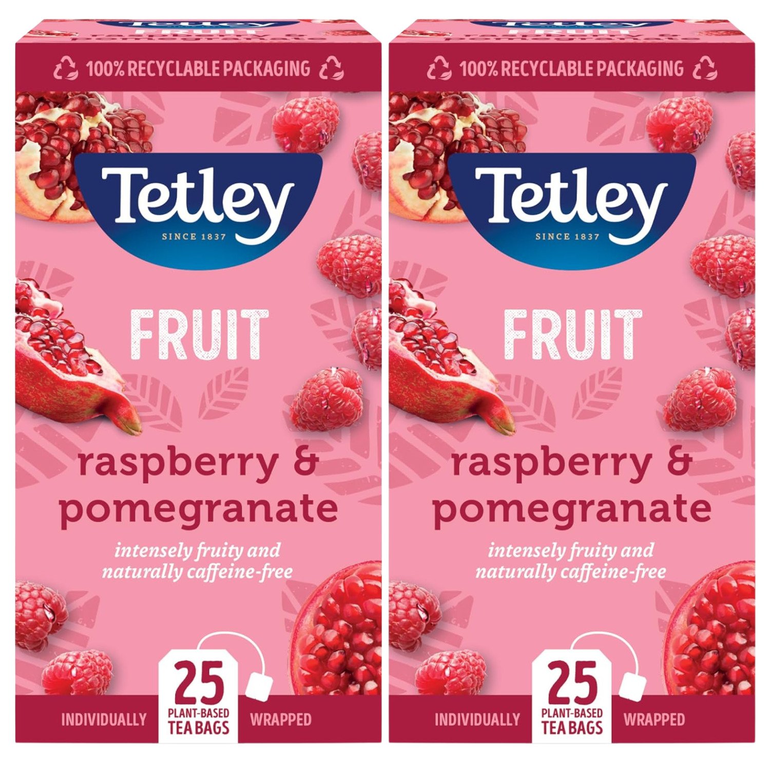 Tetley Tea Herbal Bags Raspberry & Pomegranate Individually Wrapped Sachets x2