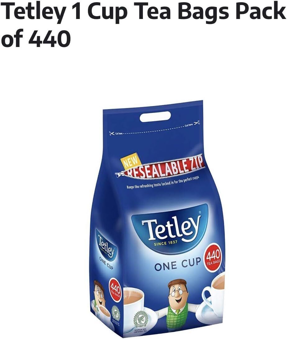 Tetley Tea Bags 440 One Cup Black Tea, Resealable Zip Bag