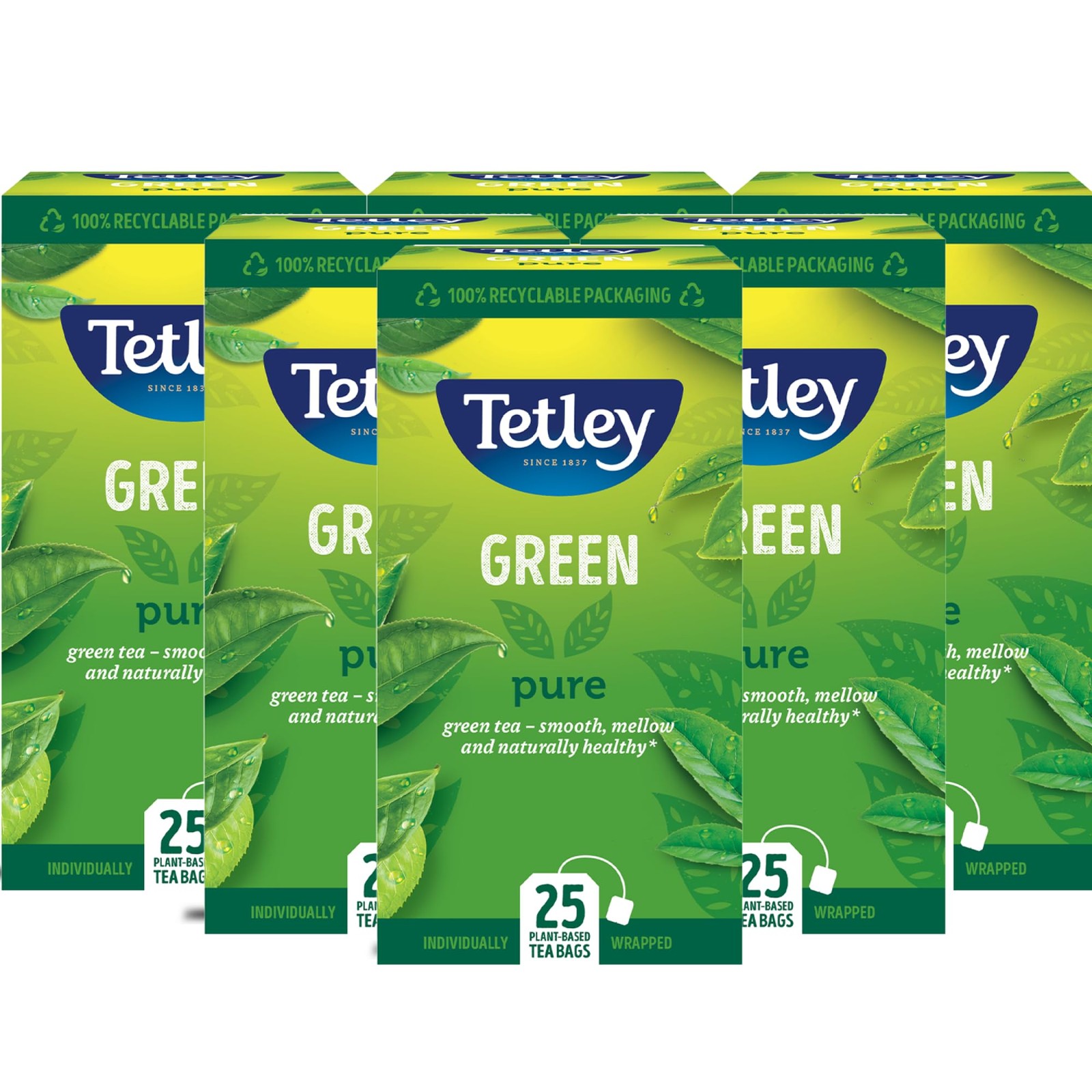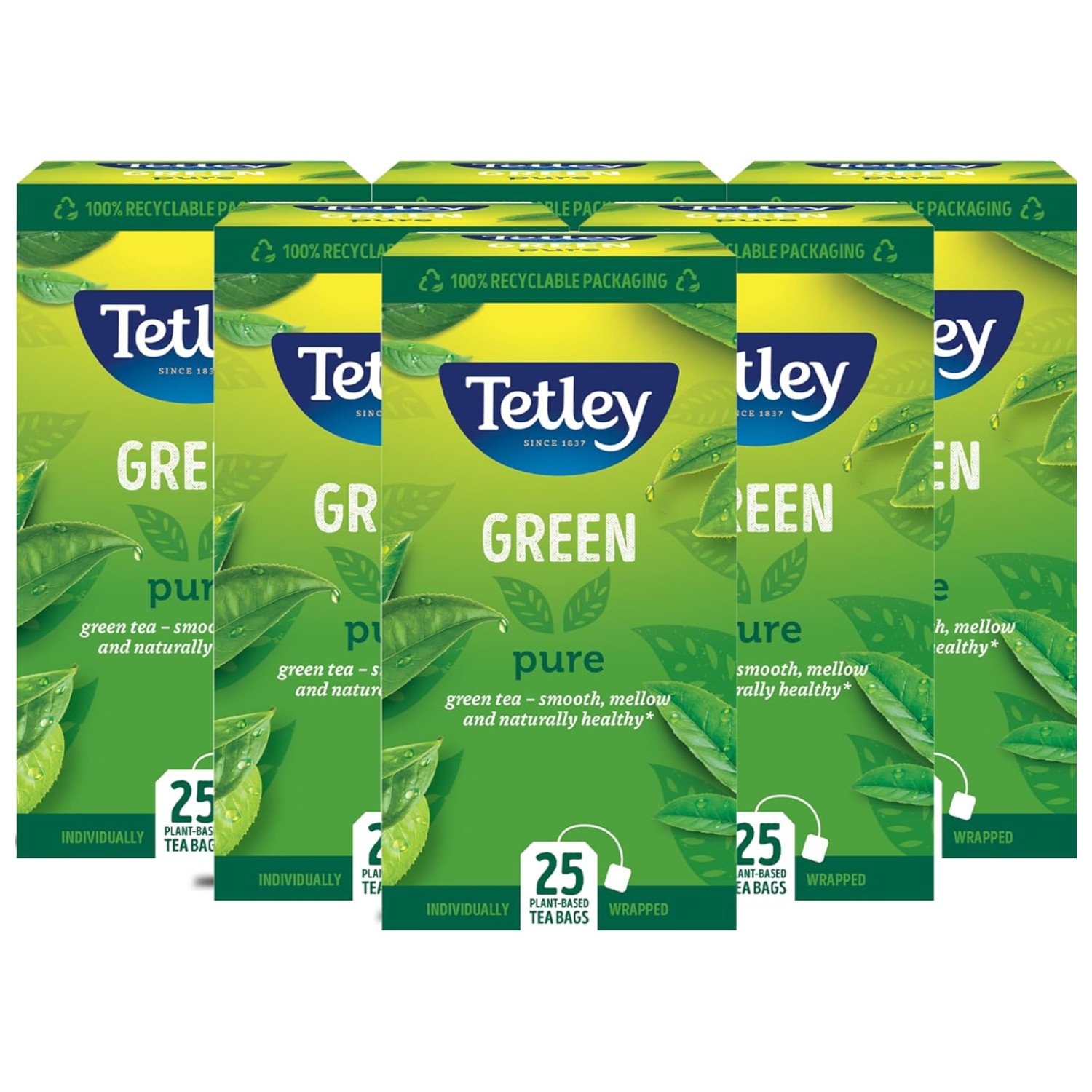 Tetley Pure Green Tea Bags Indiviually Wrapped and Enveloped (Pack 25)