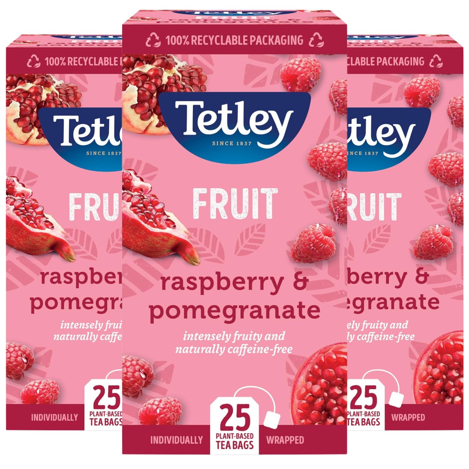 Tetley Tea Herbal Bags Raspberry & Pomegranate Individually Wrapped Sachets x3