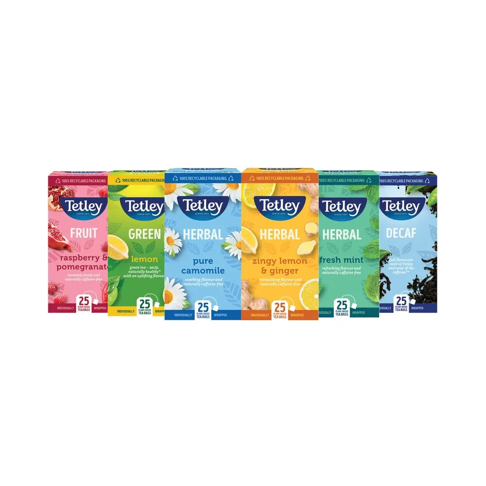 Tetley Fruit+Herbal Tea Bags Variety Pack 6x25 (Pack of 150) XFO3507