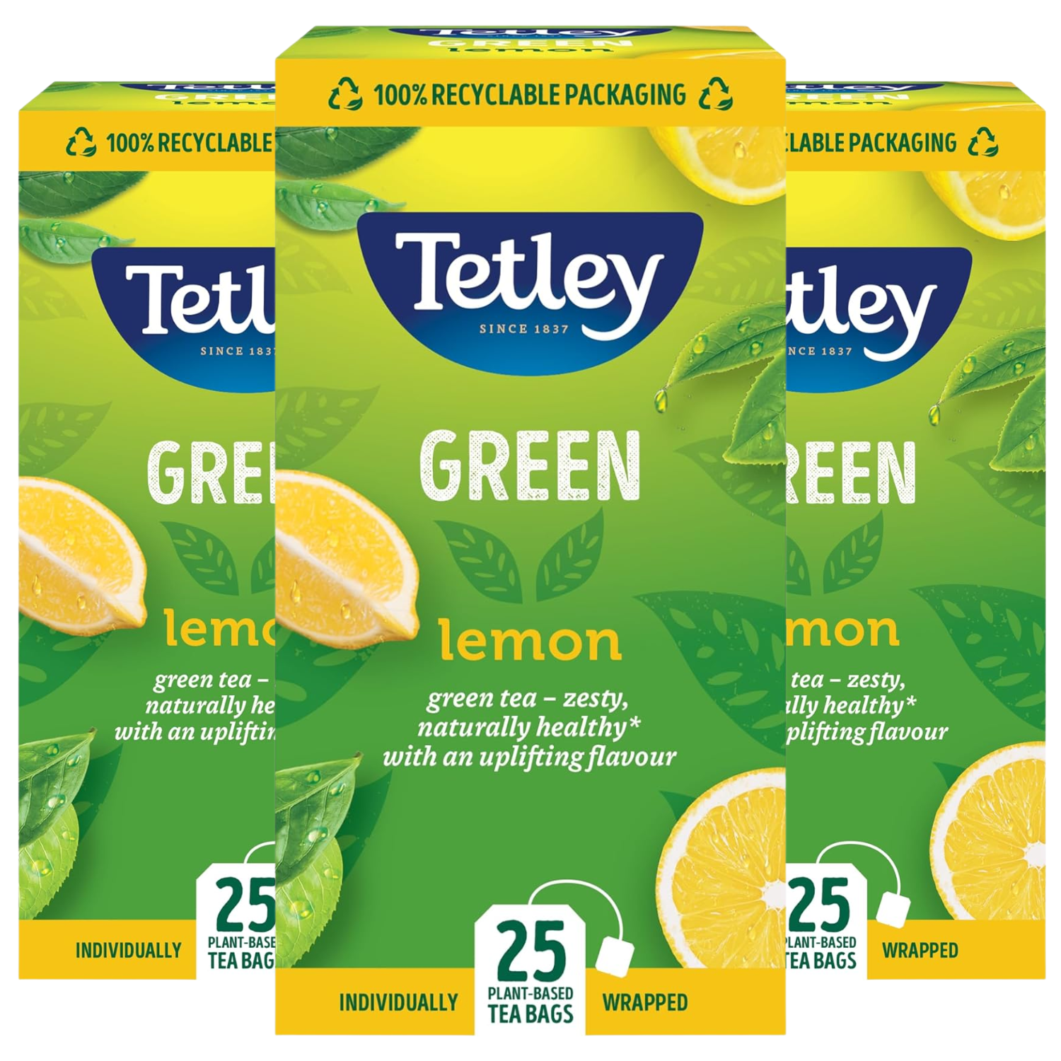 Tetley Lemon Green Tea Bags - Refreshing & Healthy Citrus Blend - Rainforest Alliance Certified - Plant Based Tea Bags - Perfect for a Relaxing Moment - 150 Teabags (6x25 Pack)