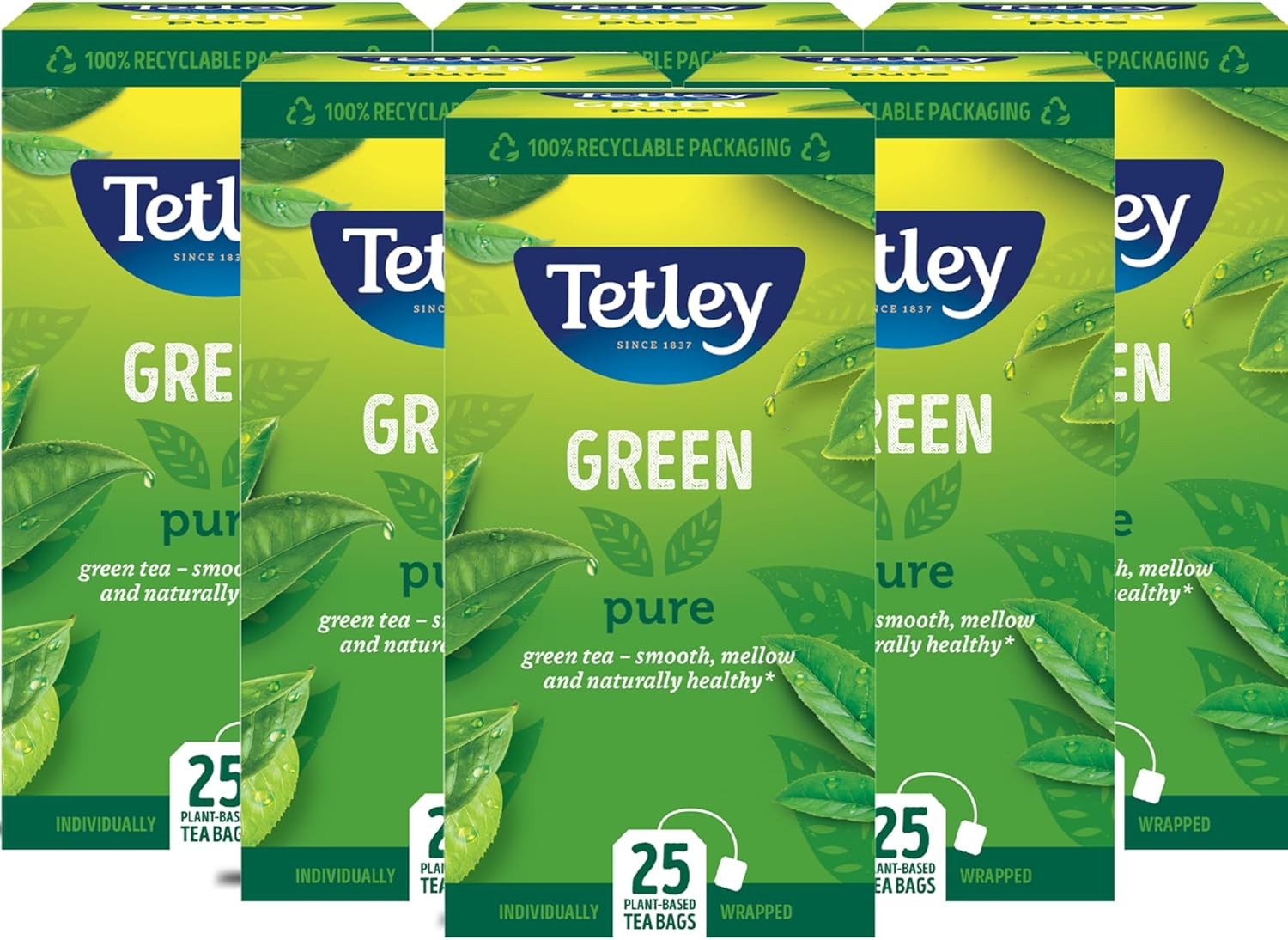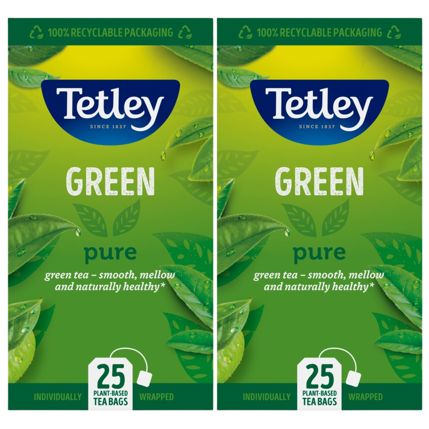 Tetley Pure Green Tea Bags - Naturally Smooth & Refreshing - Plant-Based Teabag