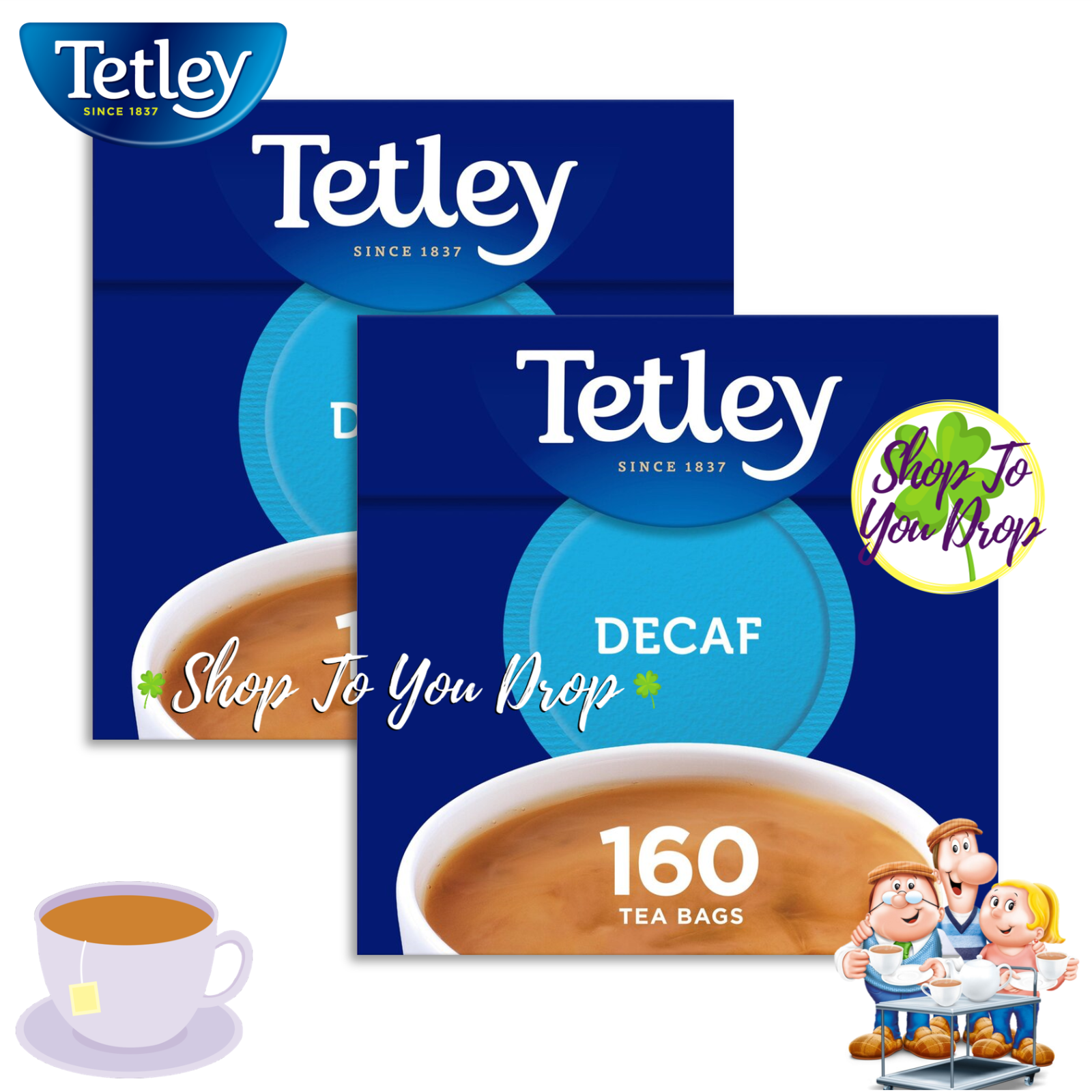 TETLEY DECAF TEA BAGS 2 x 160 - 320 Teabags 500g Cup No Caffeine Decaffeinated☕