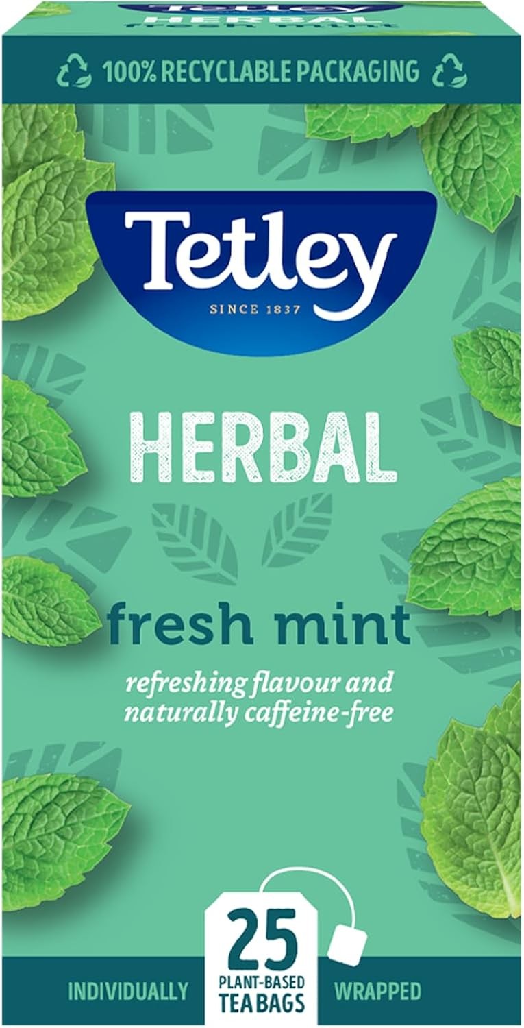Tetley Fresh Mint Tea Bags 25 Teabags Peppermint Spearmint Herbal Infusion