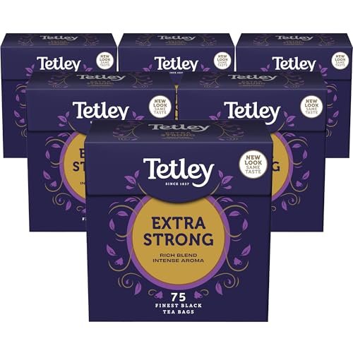 Tetley Extra Strong Tea, 6 x 75 Tea Bags - Rainforest Alliance Certified Classic Black Teabags - Bold, Rich Taste for a Full Flavoured British Brew at Breakfast or Anytime