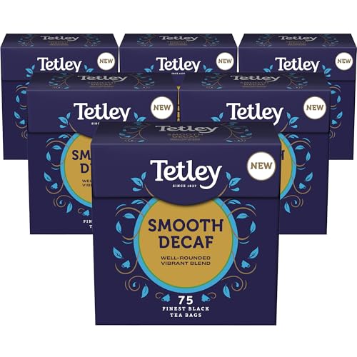 Tetley Smooth Decaf Tea, 6 x 75 Teabags - Rainforest Alliance Certified Decaf Tea Bags - Rich, Smooth Taste for a Full Flavoured British Brew at Breakfast or Anytime