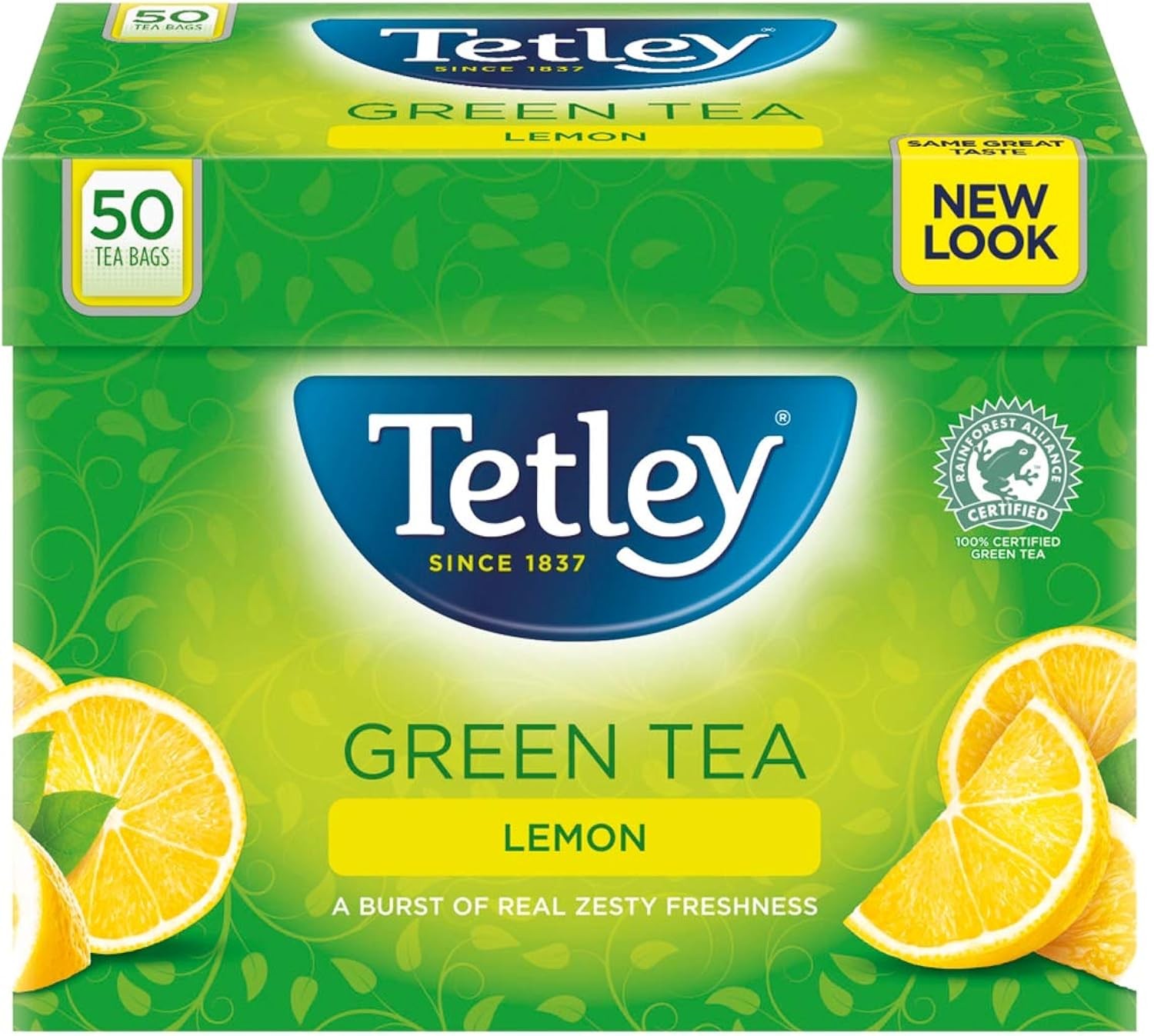 Tetley Green Tea Lemon 50 Teabags Box - Naturally Smooth Mellow Green Tea