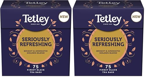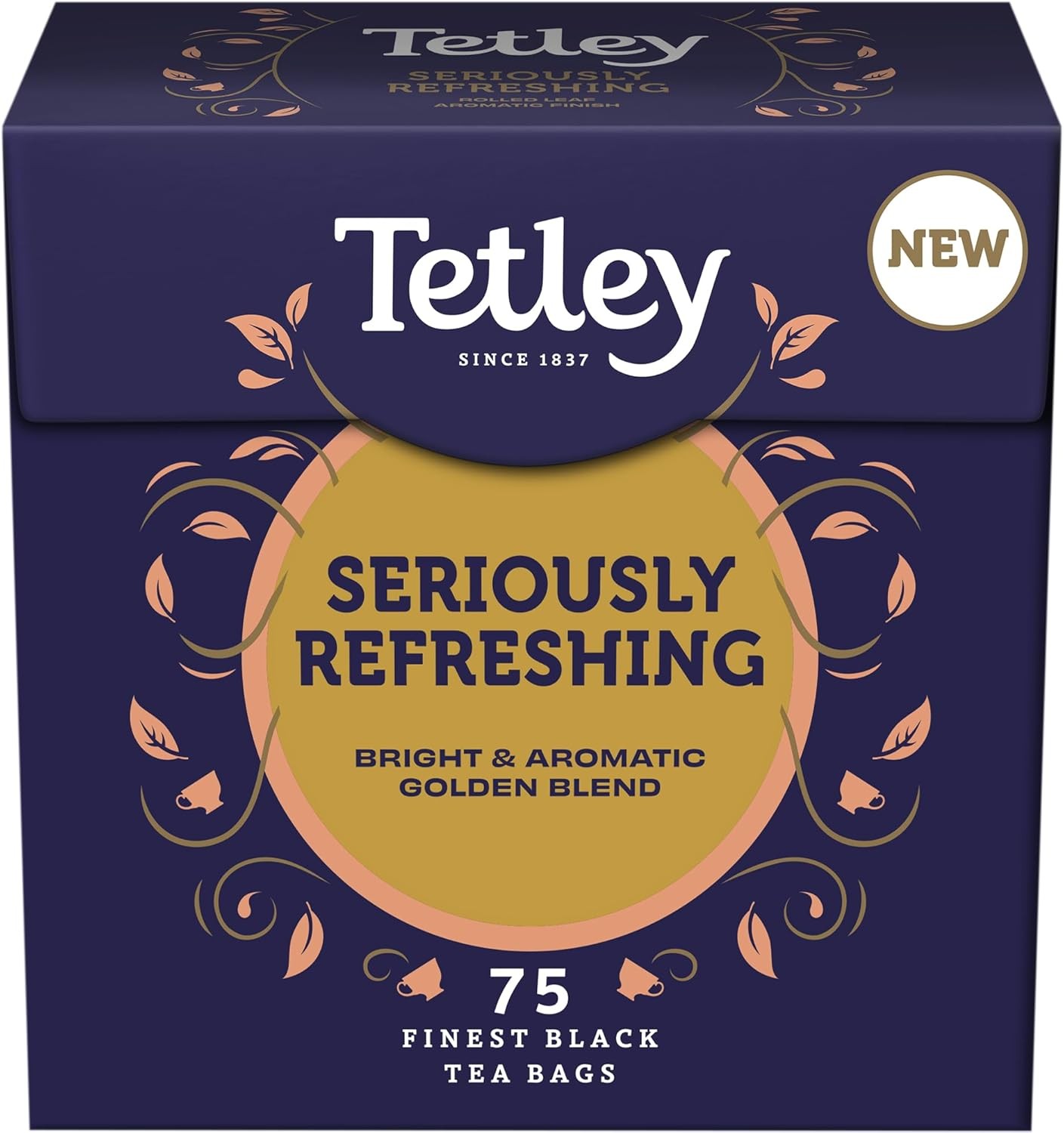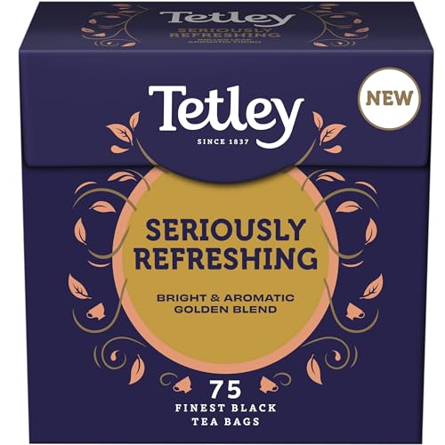 Tetley Seriously Refreshing Tea, 75 Tea Bags - Rainforest Alliance Certified Classic Gold Blend Teabags - Bright and Aromatic Taste for a Full Flavoured British Brew at Breakfast or Anytime