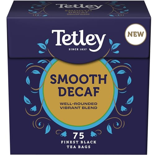 Tetley Smooth Decaf Tea, 75 Teabags - Rainforest Alliance Certified Decaf Tea Bags - Rich, Smooth Taste for a Full Flavoured British Brew at Breakfast or Anytime