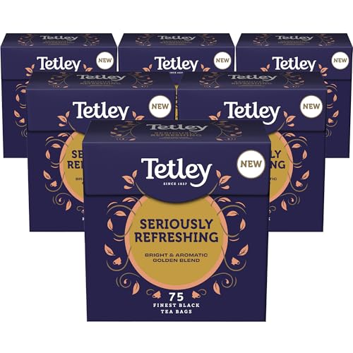 Tetley Seriously Refreshing Tea, 6 x 75 Tea Bags - Rainforest Alliance Certified Classic Gold Blend Teabags - Bright and Aromatic Taste for a Full Flavoured British Brew at Breakfast or Anytime