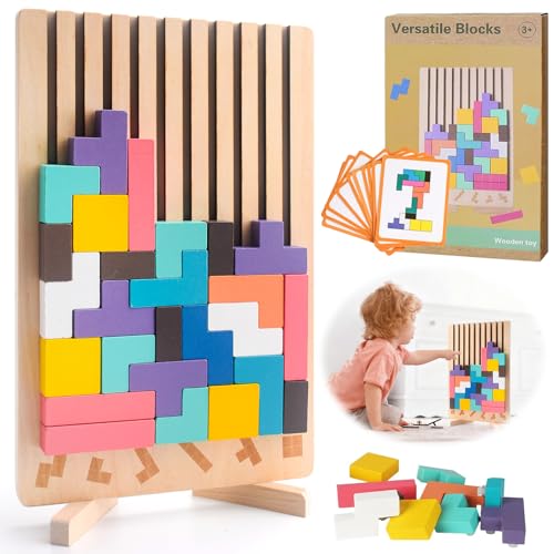 JONEG Toys for Kids 3-8 Year Old: Wooden Tetris Puzzle 3D Montessori Stacking Toy, Gifts for 3 4 5 6 7 8 9 10 Year Old Boys Girls Presents, Russian Blocks Tetris Game Educational Toys for Kids Adults