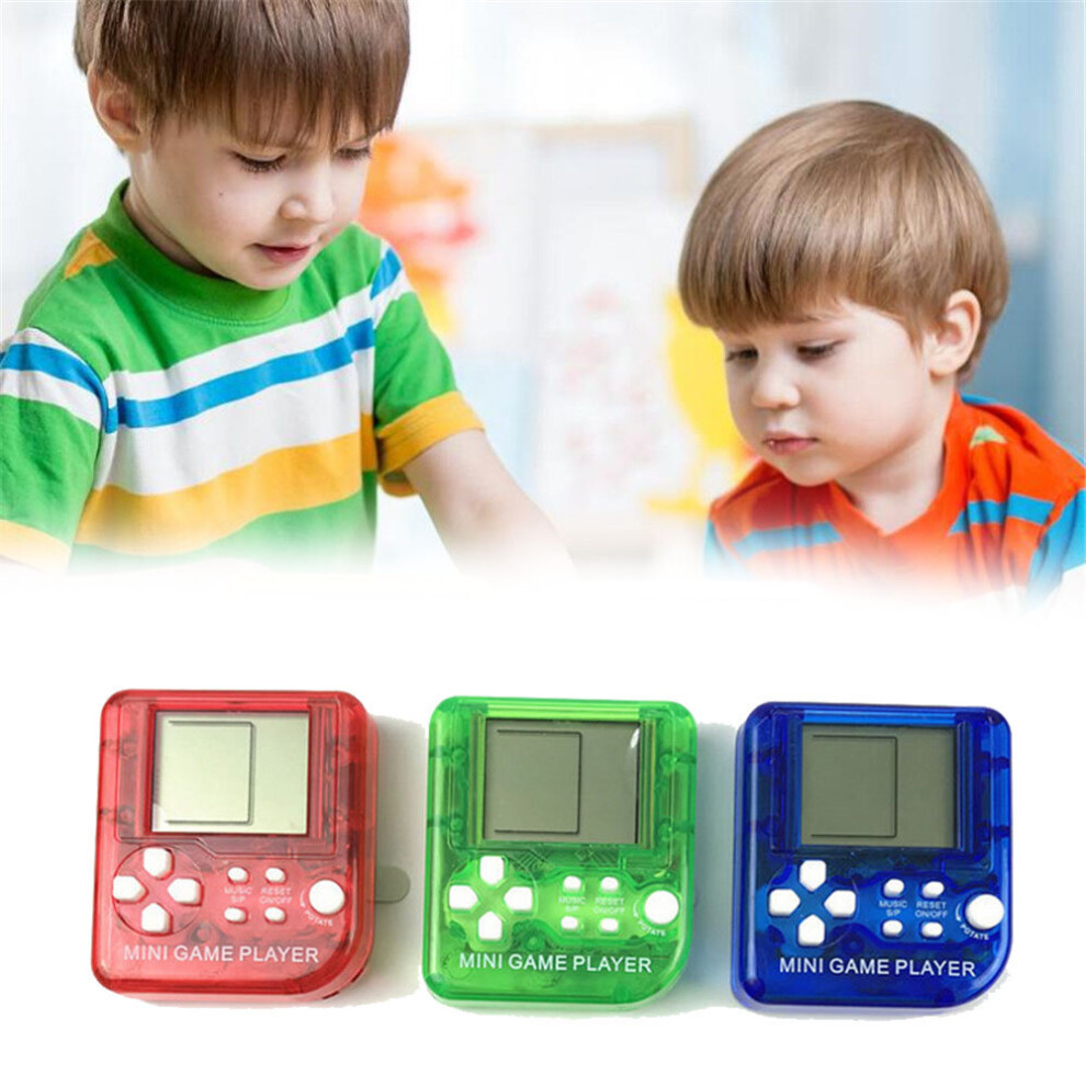 3PCS Mini Handheld Electronic Tetris Game Machine Pocket Stress Relief Toy Keychain Random Color Transparent 5 colors random