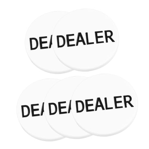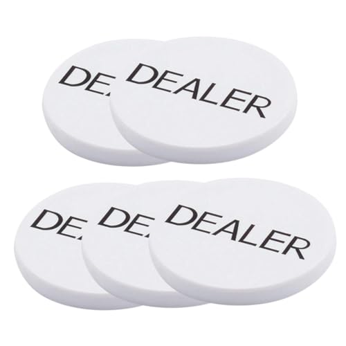 BESPORTBLE 5Pcs Poker Dealer Chips White Blind Tokens Gambling Game Accessories for Texas Hold and Bingo Family Fun