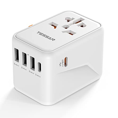 TESSAN Universal Travel Adapter Worldwide with PD 45W USB C Fast Charging, 6 in 1 Universal Plug Adaptor UK to World, International Travel Adapter for Multi Countries EU, USA, UK, AU, Thailand etc