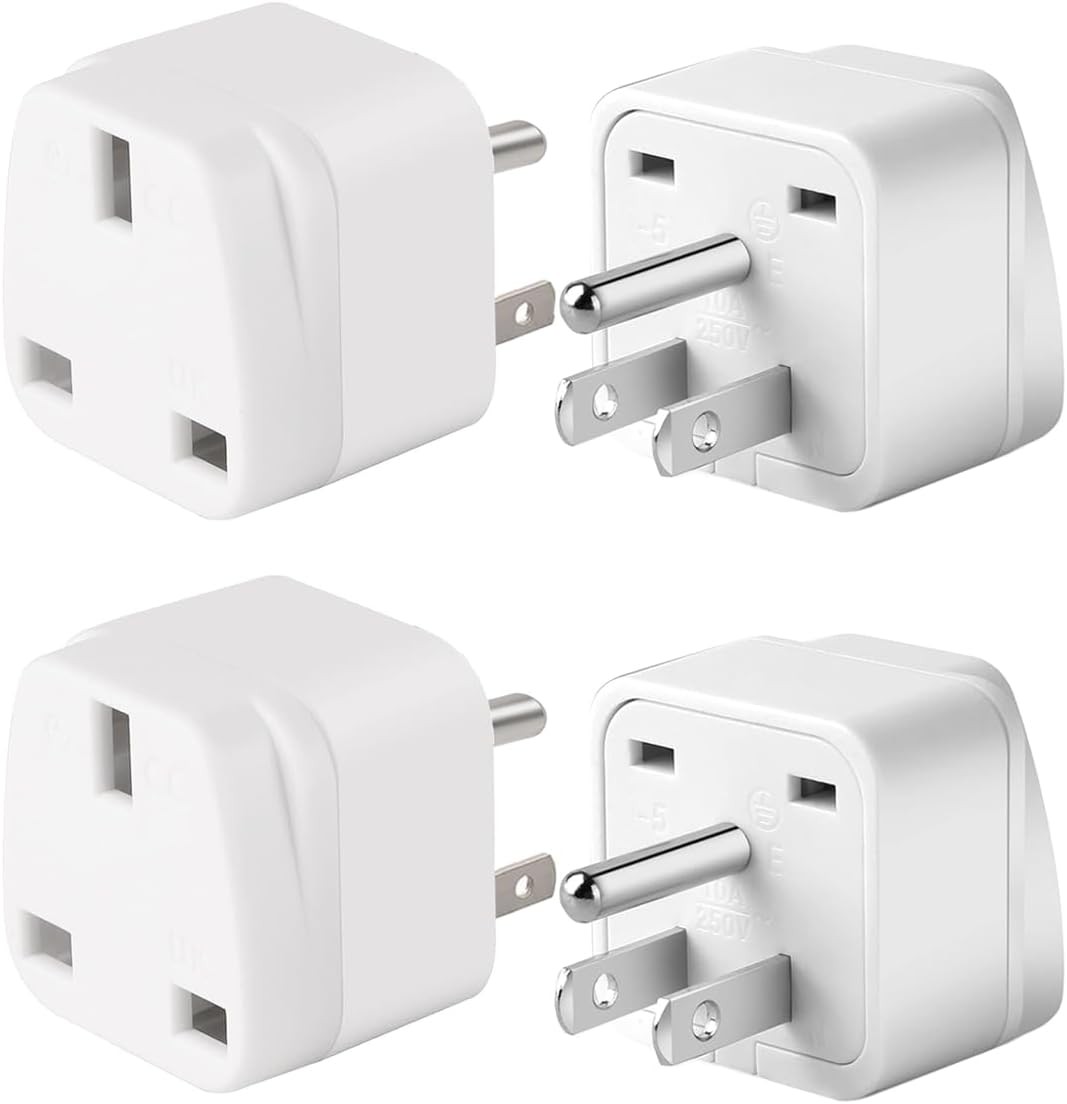 LUKELI 4 Pack UK to USA Plug Adaptor Thailand Travel Adapter White 4